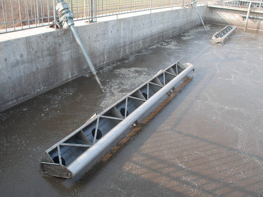 潷水器是間歇式活性污泥法處理污水的必配機(jī)械裝置。間歇式活性污泥法的污水處理機(jī)制與普通活性污泥法相同,其區(qū)別在于原污水不是順次流經(jīng)各個處理單元而是放流到單一反應(yīng)池內(nèi),按時間順序?qū)崿F(xiàn)不同目的的操作,其基本操作程序由進(jìn)水、反應(yīng)、沉淀、出水和待機(jī)等五個基本過程組成。從污水流入開始到待機(jī)時間結(jié)束為一個周期。潷水器通過電控柜內(nèi)的時間繼電器和螺旋推進(jìn)裝置內(nèi)的引程開關(guān),實現(xiàn)定時、定量排放達(dá)標(biāo)處理水,從而使SBR池實現(xiàn)連續(xù)處理污水的最終目的。